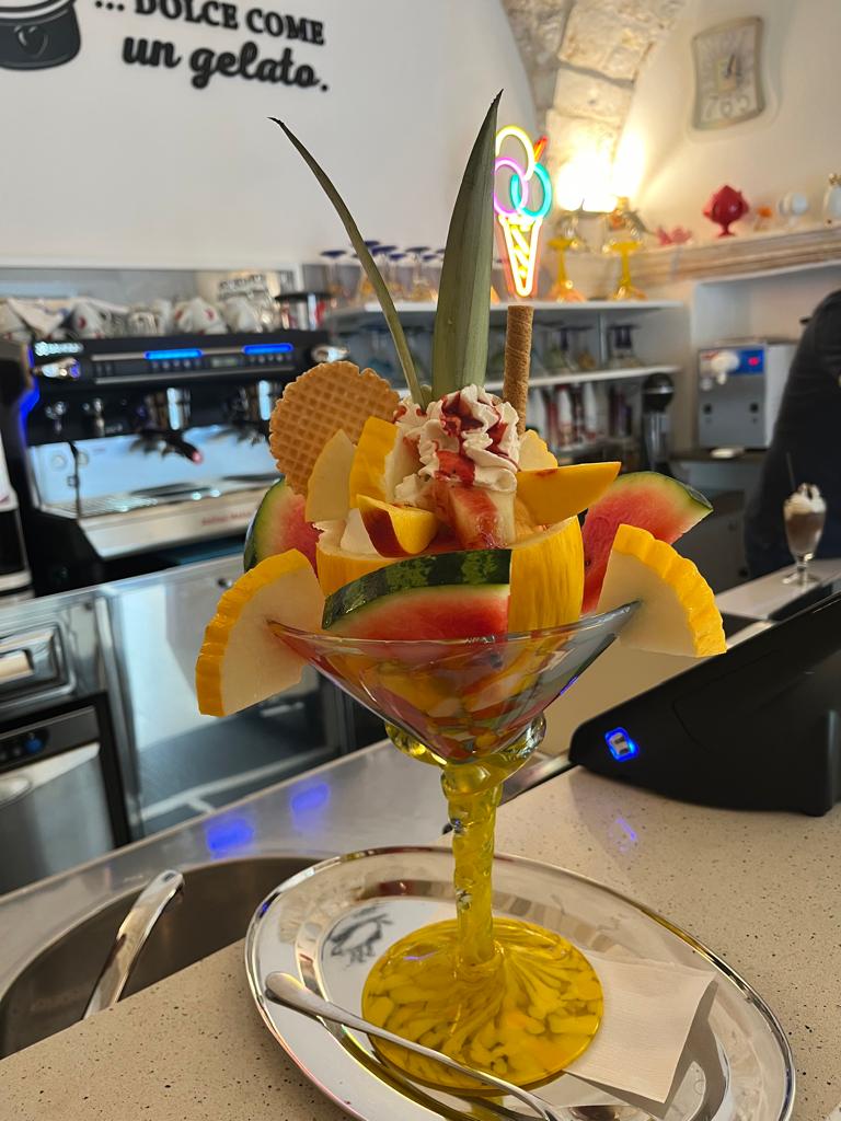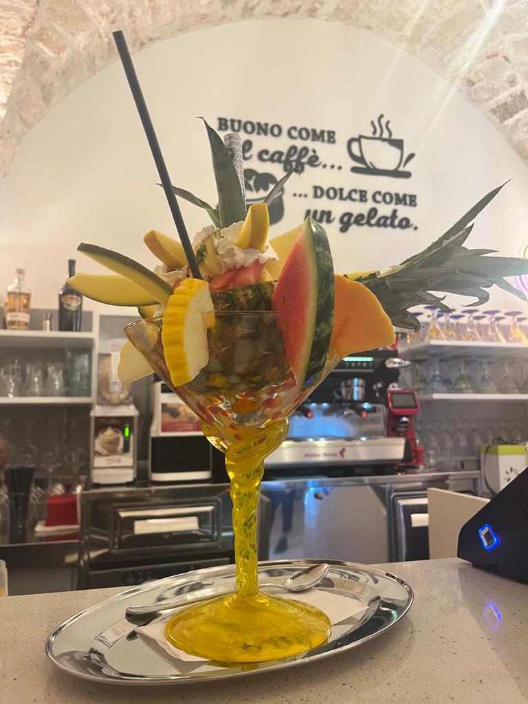 Vieni al Bar Gelateria Paradiso nel cuore di Ostuni per gustare una brioche siciliana e gelato artigianale senza glutine. Delizie uniche come coppe gelato con frutta fresca e granite siciliane ti aspettano. Con un’ampia selezione di aperitivi e cocktail, regalati un momento di piacere autentico.